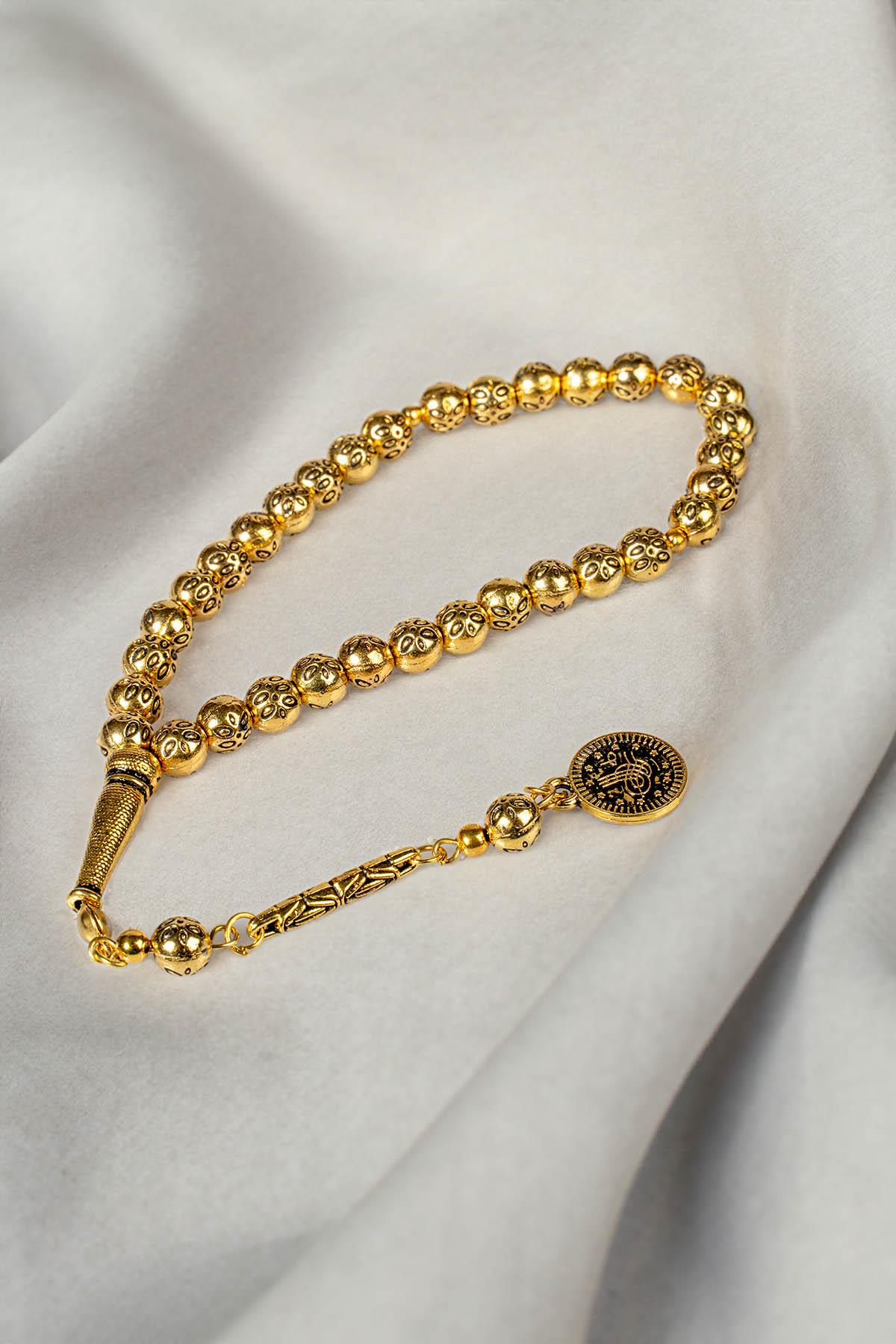 Altın Görünümlü Otantik Desenli Metal Tesbih (BKL113)