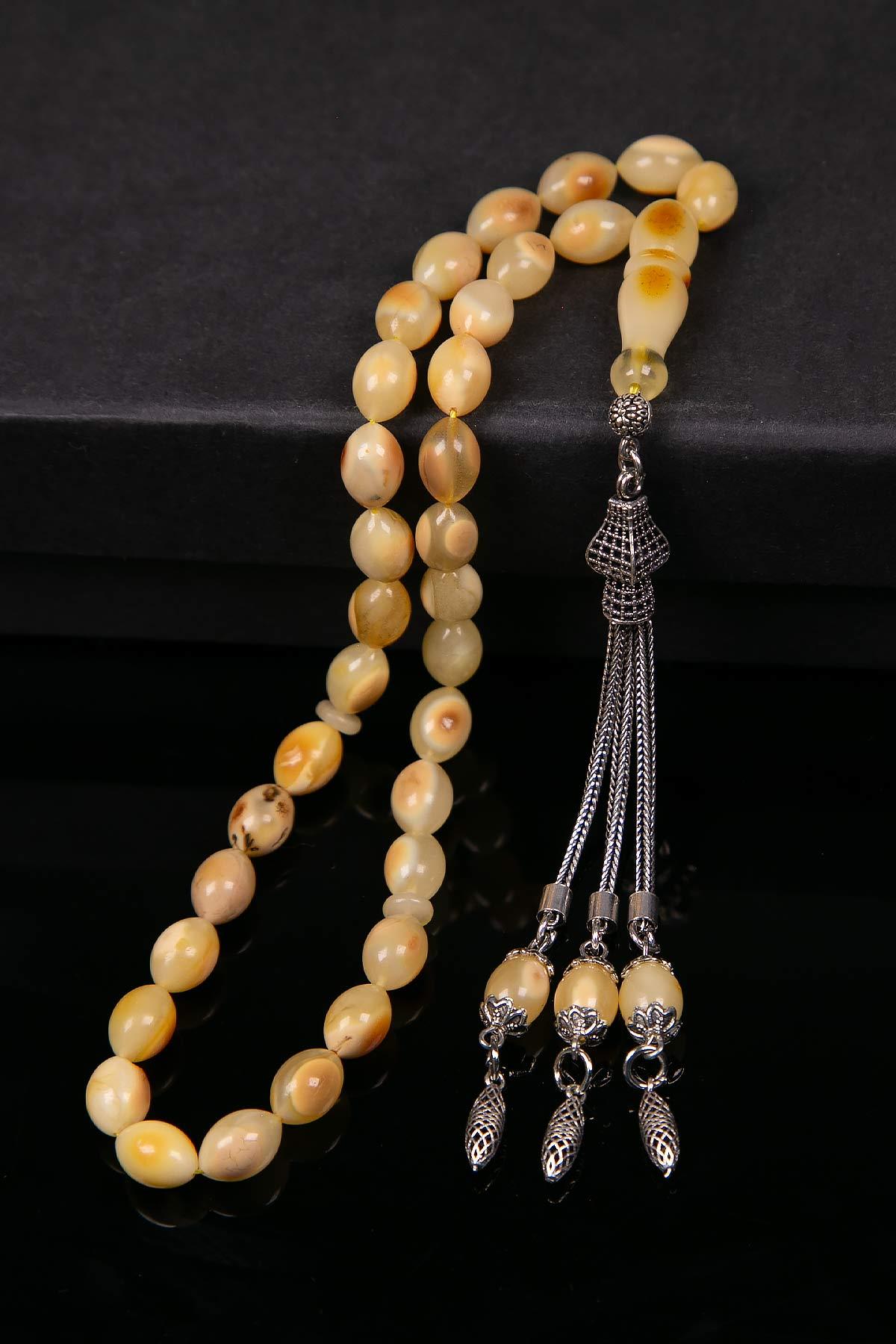 Arpa Tane Gümüş Püsküllü Kaya Damla Kehribar Tesbih (DL400023)