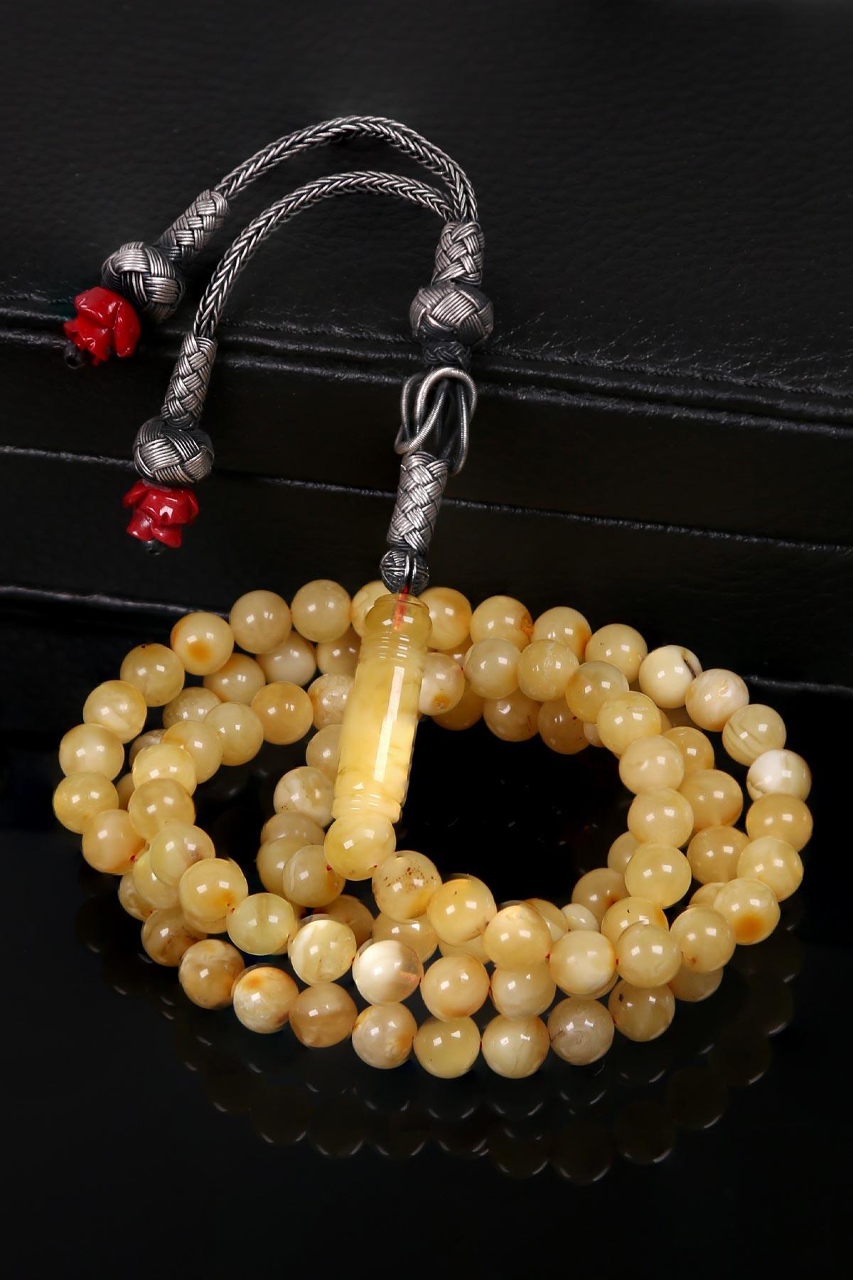 Yoğurtlu renk tonunda tamamen doğal damla kehribar tesbihimiz  elde ısındımı hafiften doğal çam kokusu gelir doğal olması sebebiyle bu koku esans gibi yoğun gelmez hafiften gelir.