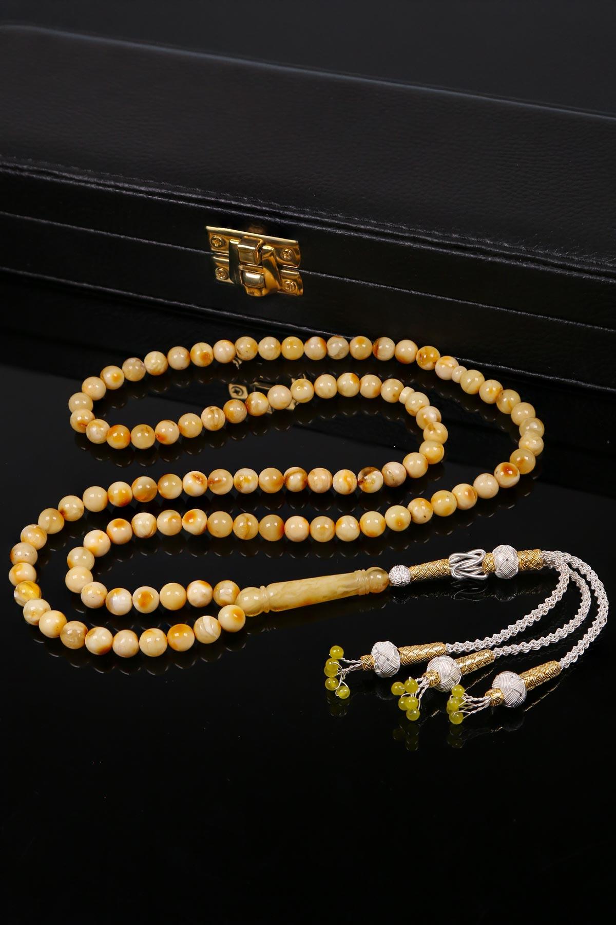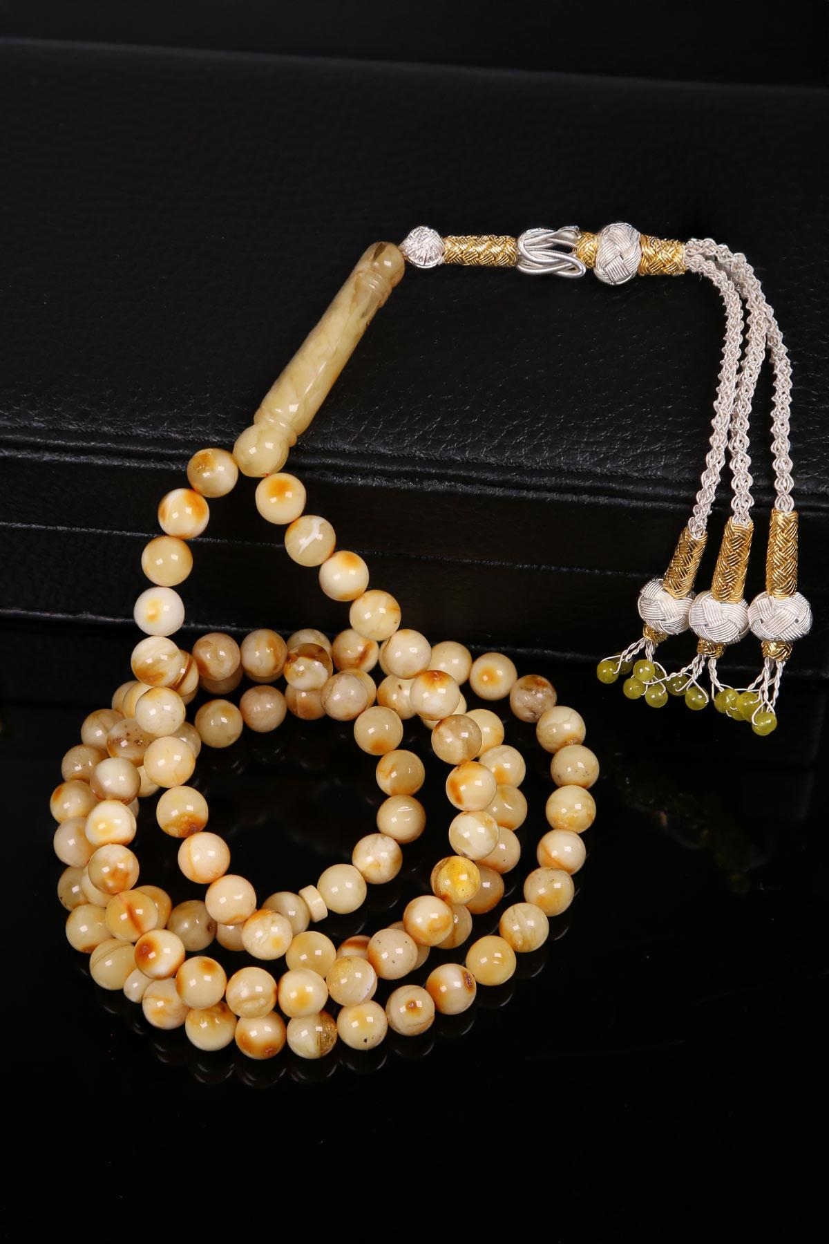 Gümüş Kazaz Püsküllü 99'luk Kaya Damla Kehribar Tesbih (DL400100)