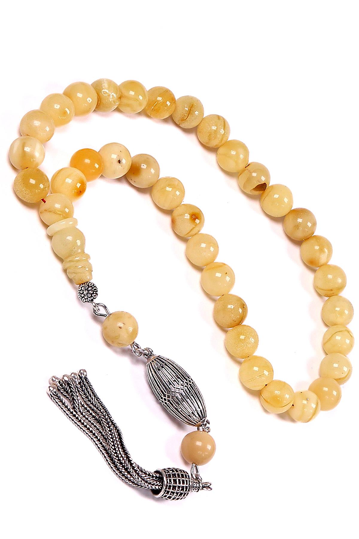 Yoğurtlu renk tonunda tamamen doğal damla kehribar tesbihimiz  elde ısındımı hafiften doğal çam kokusu gelir doğal olması sebebiyle bu koku esans gibi yoğun gelmez hafiften gelir.