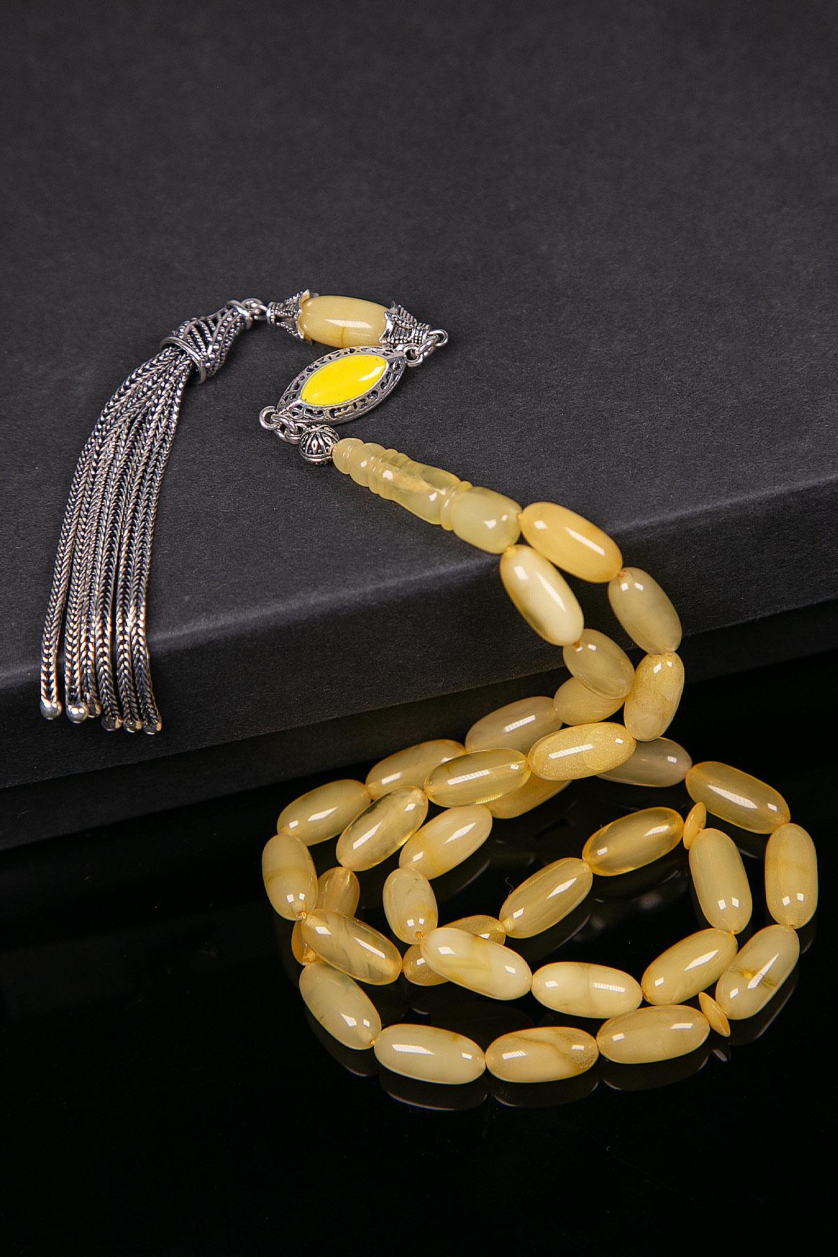 Uzun Arpa Gümüş Mine Püsküllü Boy Kaya Damla Kehribar Tesbih (DL40006)